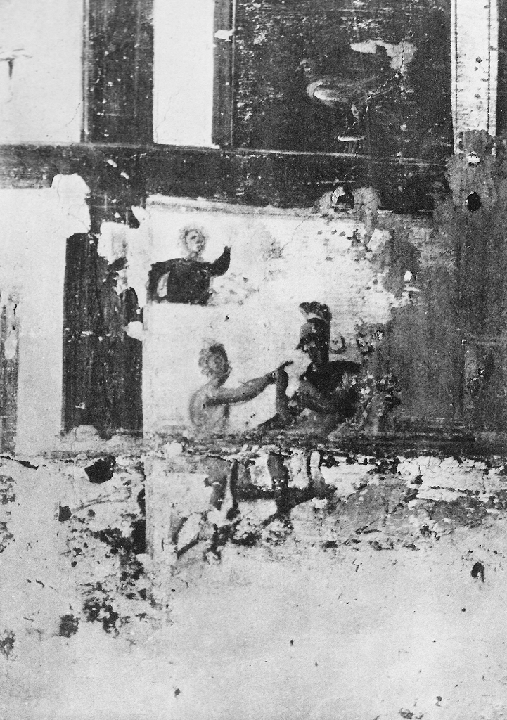 Detail of the north wall (d), layer 4. Photo: Felletti Maj 1961, Tav. II.