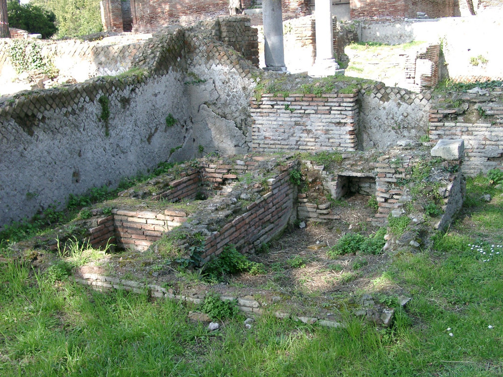 The Sanctuary of Attis or Attideum is situated on the east side of the Field of the Magna Mater. It is preceded by a fairly large area (c. 9.90 x 11.10) without a roof, surrounded by a wall (opus reticulatum from the Julio-Claudian period). The open area was entered from the west. The entrance is decorated by a porch with two marble pilasters, and has three steps on the outside and two on the inside. On the floor is opus spicatum. In this open area are three basins. It has been suggested that these were fish-ponds, because there are a few references of fish being offered to Attis.