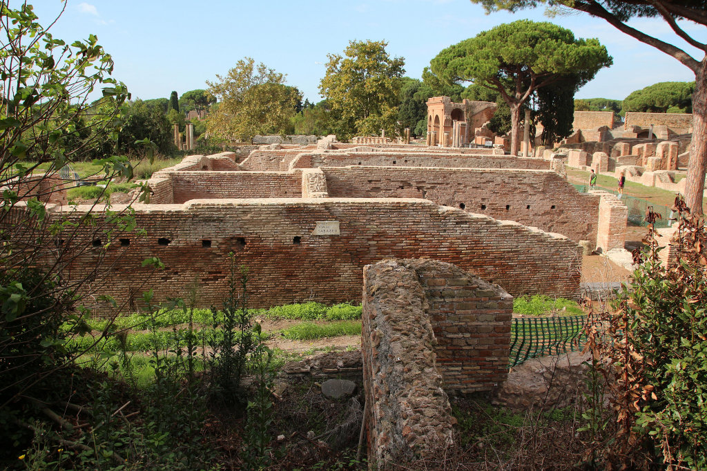 This store building has been excavated only partly. The masonry has been dated to the Hadrianic period. Along the Decumanus are six shops. Between the shops is the entrance corridor, c. 2 meters wide. It leads to rooms around a courtyard. Near the entrance corridor is a staircase. Between this building and the Warehouse of Hortensius to the west is a narrow alley with some buttresses. In one of the east rooms the Shrine of Sabazius (V,XII,3) was found (described on a separate page). |