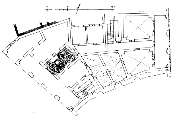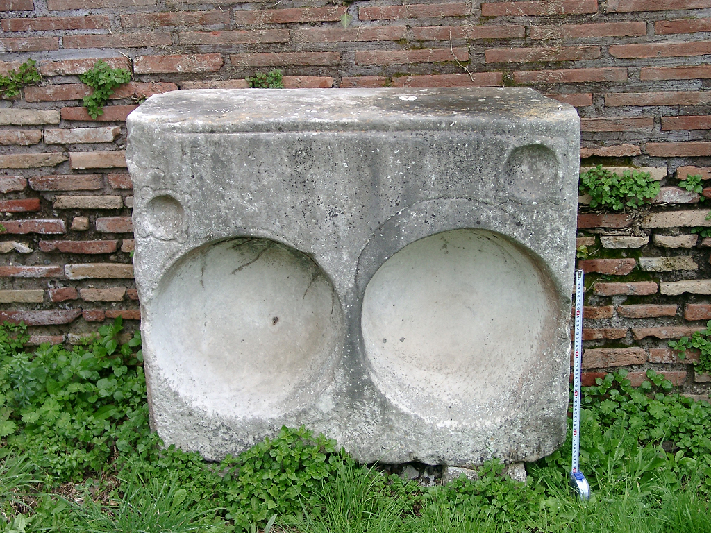 Two mensae ponderariae (slabs with cavities to check compliancy to standard weights) can be seen in the building.