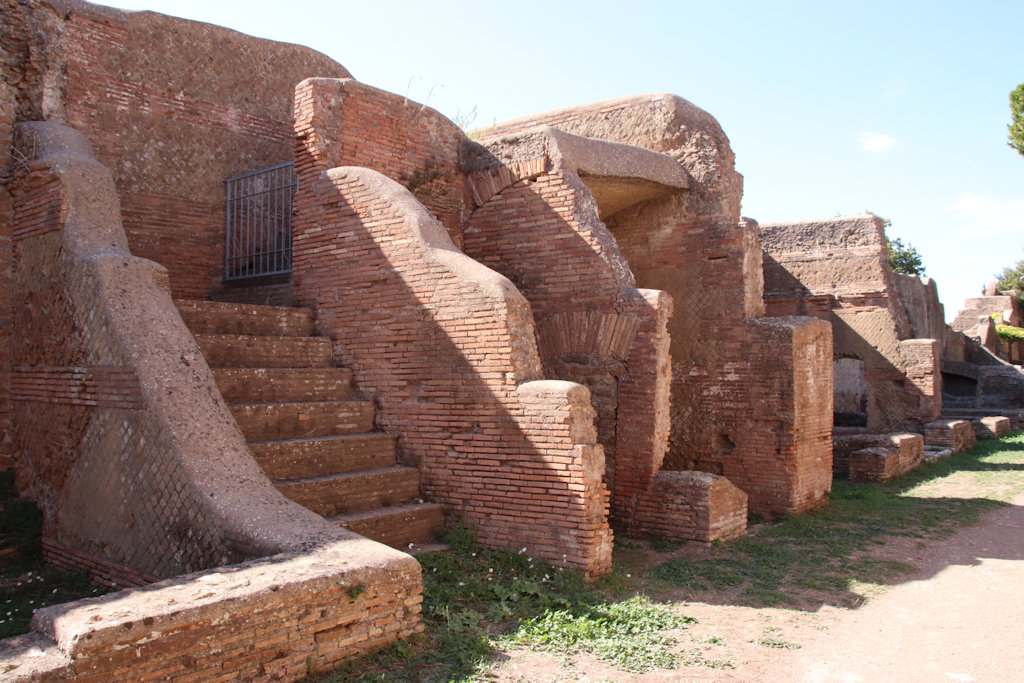 The northern stretch of the Cardo Maximus was flanked by shops. The eastern shops are back-to-back with another row of shops, opening off Via dei Dipinti. The shops on Via dei Dipinti were numbered I,V,1. They were built during the reign of Hadrian (opus mixtum).