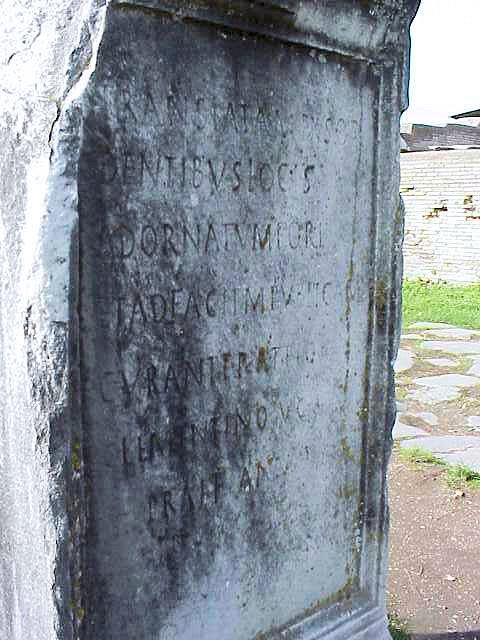 The base of the equestrian statue of Manilius Rusticianus next to the Basilica. Photo: Klaus Heese.