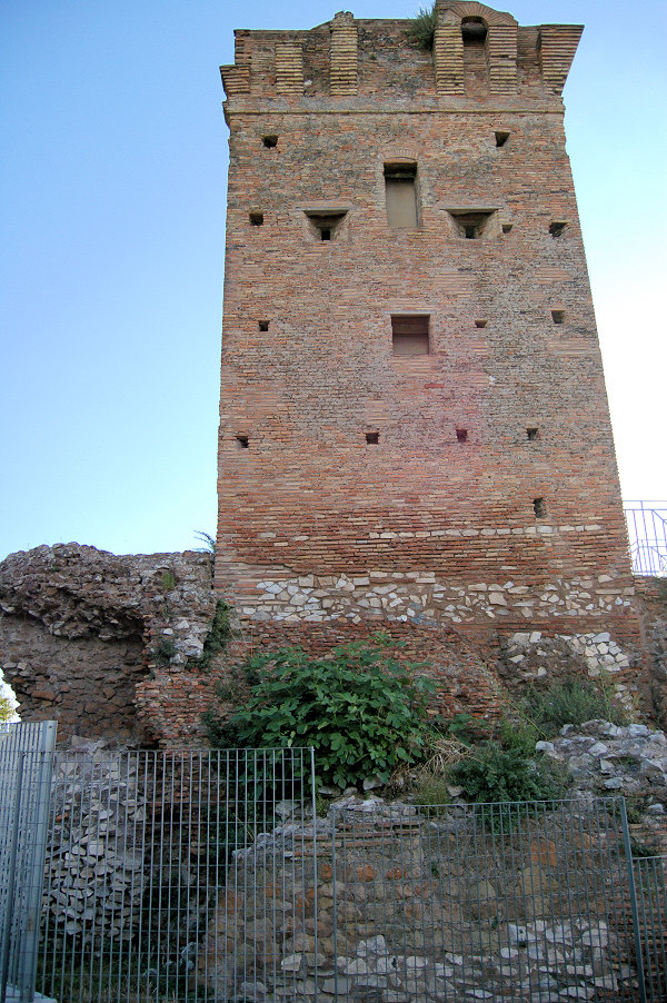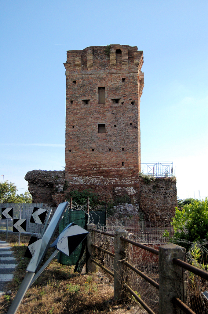 ("Boacciana" Tower)This tower is to the west of the excavated area, at a considerable distance, near the ancient Tiber mouth. It can be found near the modern bridge (Ponte della Scafa) that crosses the Tiber, leading to Fiumicino airport. The lower part was built in the Trajanic period (brick stamps suggest a date of c. 112 AD), and the building was probably a small lighthouse or beacon.