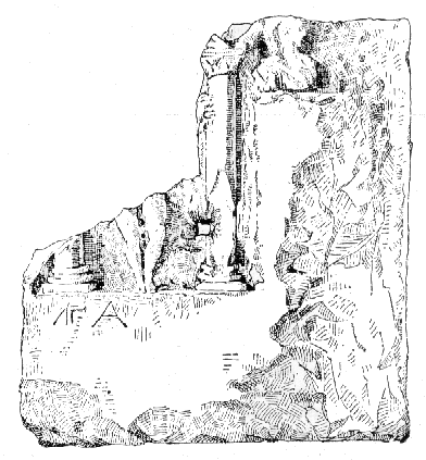 | Plan of the hall. From Moretti 1920, fig. 2. | The Christian relief. From Moretti 1920, fig. 7. |
