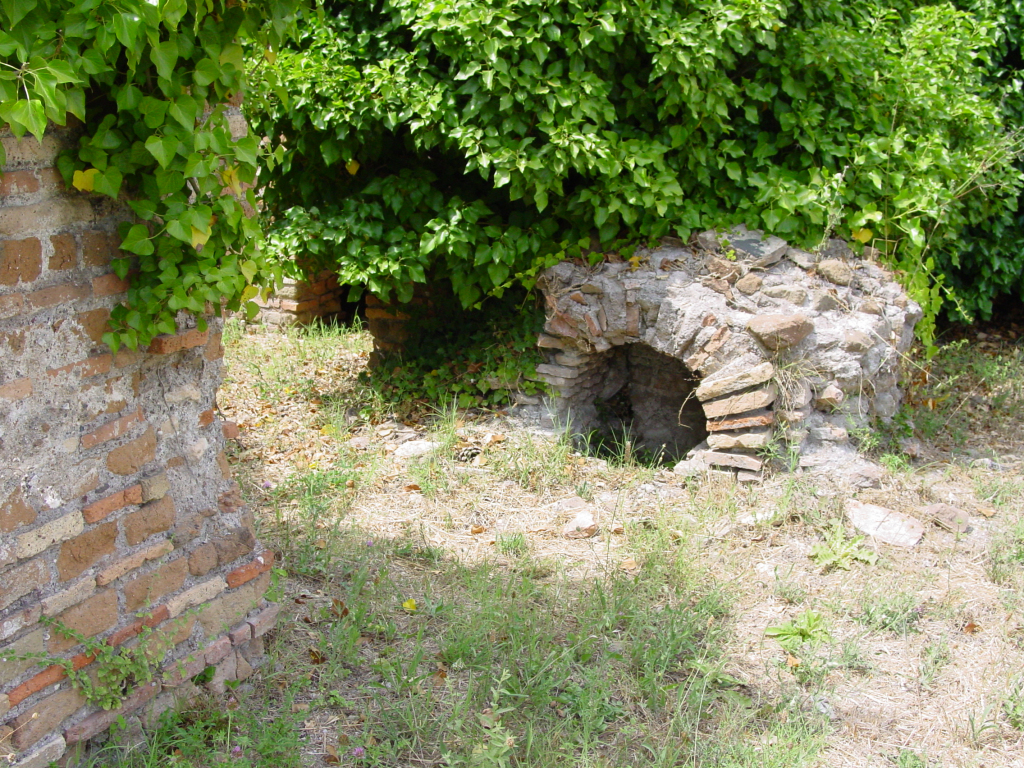 This is a very large Trajanic bar (c. 14.50 x 9), that was modified in the fourth century. It is situated to the north-west of the large courtyard of block I. It is a rectangular room, with doors in all walls. The widest door (1.42) is in the south-east wall. In this wall are also five windows. There is another window in the south-west wall. Next to the door in the north-west wall a basin was set. In the centre of the room are four piers. The bar counter was set against one of these. It contains a basin in which two lead pipes have been preserved. There is also a water basin outside the room, to the north-east. |