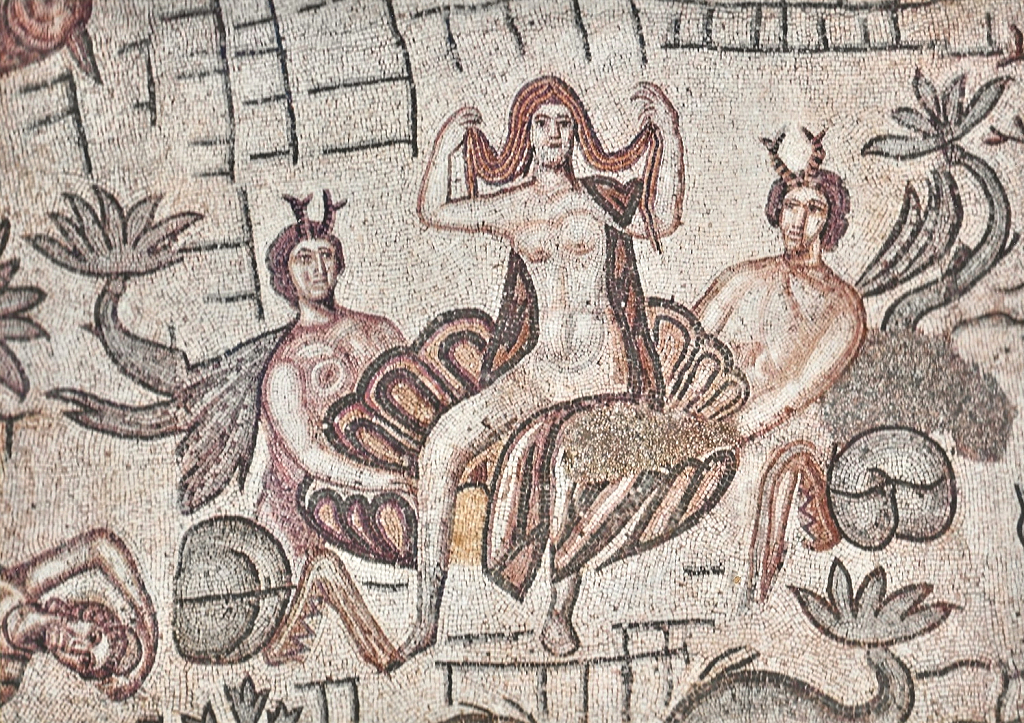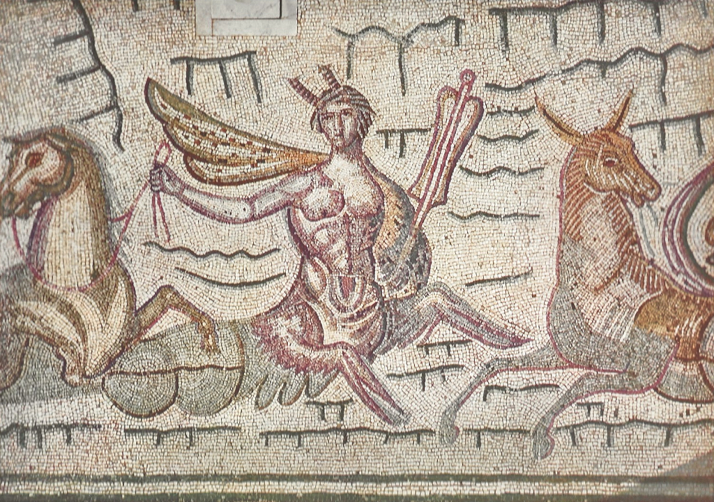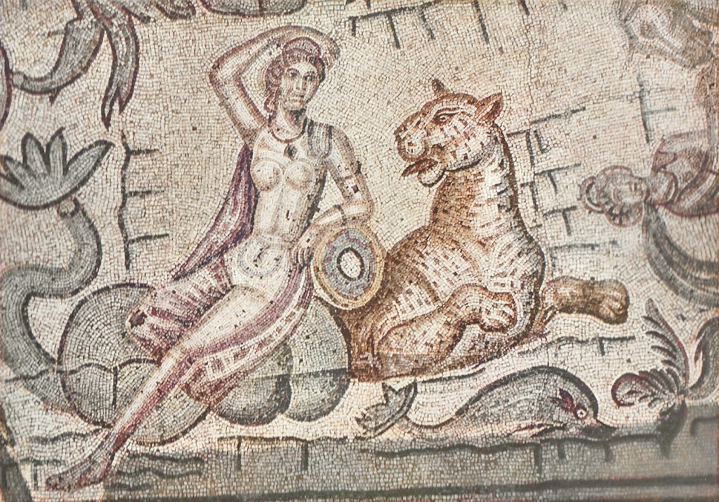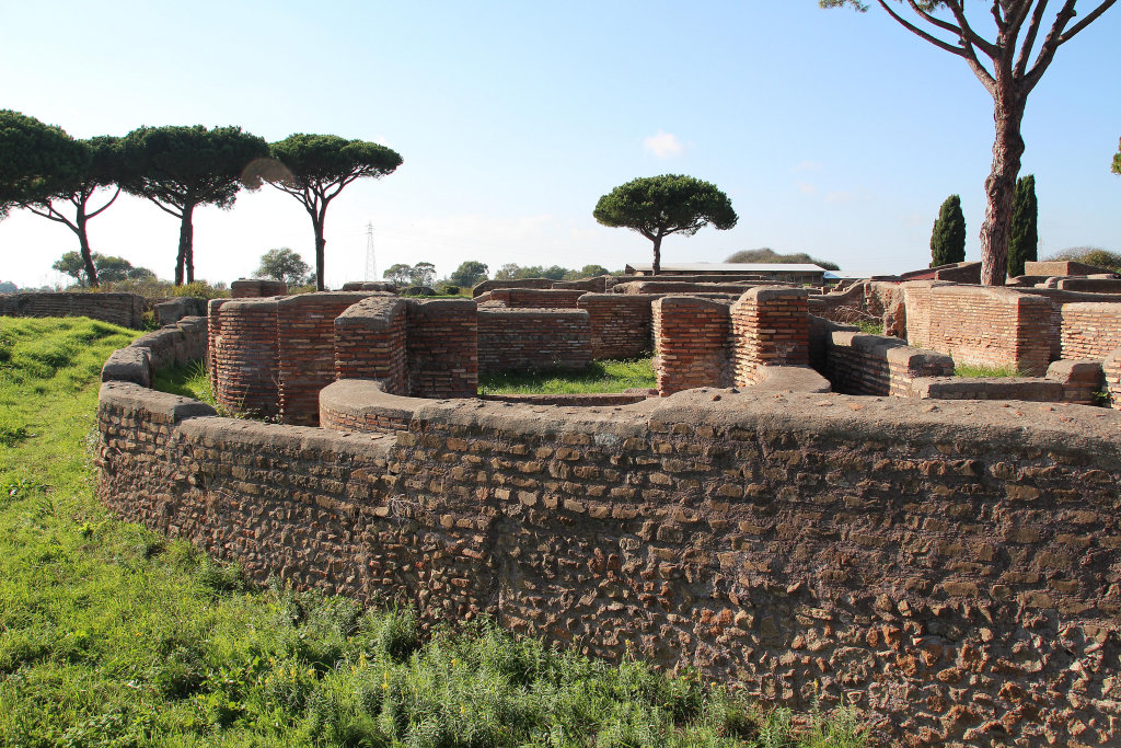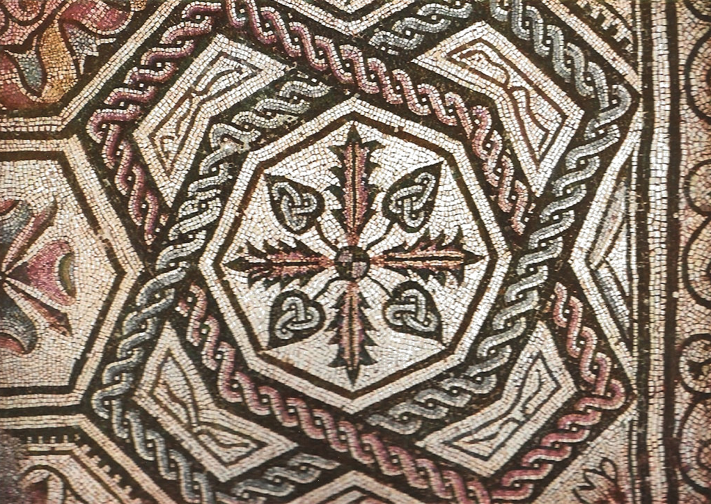 | The House of the Dioscures was built in apartments and shops in the south corner of the Garden Houses. In the first quarter of the fifth century walls in latericium and vittatum were added to the opus mixtum from the second century AD. Other walls were demolished. Click here to open a detailed plan of the house with the building phases (Heres 1982, fig. 84). Click here to open a detailed plan of the house with the mosaics (Parco Archeologico di Ostia Antica). Click here to open a reconstructed plan of the Hadrianic apartments and shops in which the building was installed (Parco Archeologico di Ostia Antica). Vestibule A, with a curved wall and a curved threshold, is the main entrance. In the back wall of room C are two rectangular niches flanking a semicircular niche. The niches are precisely opposite the main entrance of the building, but this would be noticed only after walking through the vestibule and room B. Room D, next to the main entrance, may have been a shop. It was connected with the house through room E. The south part of the house is shielded by a wall, behind which is service corridor U. Rooms T and S, next to a staircase, may have been used for storage. Corridor F and the former medianum G received light from the courtyard of the Garden Houses, but three windows in room G were blocked. In hall H an alcove was built, on the floor of which is a black-and-white mosaic with meanders. In front of that, in the hall itself, is a polychrome mosaic with in the centre the two Dioscures, Castor and Pollux. They are surrounded by octagons with a beaker, fruit, kantharoi, vases and baskets. This was a reception room. Room I was the main hall (10.00 x 10.50), also with a polychrome mosaic. We see Venus Anadiomene in a shell supported by two tritons, surrounded by Nereids on sea monsters. At the north side is the inscription PLVRA FACIATIS MELIORA DEDICETIS, "That you may do more and set up better things!". Parallels for the inscription have been found in North Africa. The smaller rooms M and L both have an alcove. In the walls of the alcove in M are terracotta pipes for the heating of the room. The hot air came from a nearby private bath. Room M has a polychrome mosaic with octagons and stylized plants. In room L is a black-and-white geometric mosaic, but also with a palm branch and the letters PE, which most likely stand for Saint Peter. Along the west side are bathing rooms that were reached from the north. In frigidarium O are two apsidal basins. Next to O is a small room with two windows. Room P was a caldarium, witness the raised floor and pipes in the wall. Room Q is a second caldarium, with a rectangular and an apsidal basin. All these bathing rooms were decorated with marble. The small corridor R has a hacked out niche in the back wall. To the north-west of the bathing rooms is a cistern. The Dioscures were worshipped in Ostia as protectors of shipping, also as a public cult. Therefore this house may have been inhabited by an official working for the supply, especially grain supply, of Rome. He lived at a time when Rome itself was threatened by invasions. In 410 AD Alaric sacked Rome. It is noteworthy that at such a late date pagan deities are depicted. |  Plan of the house. After SO I. |