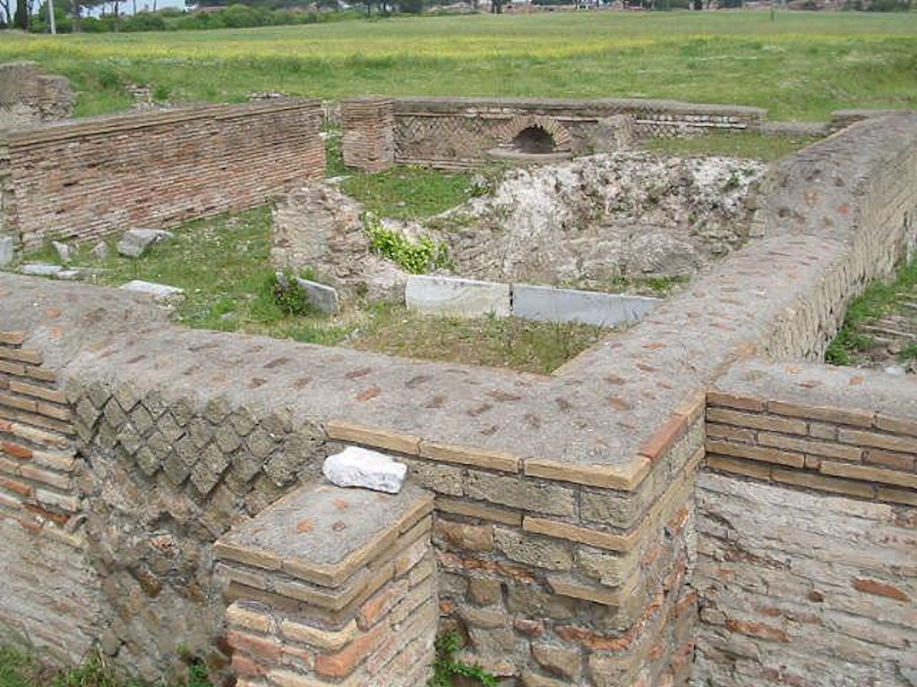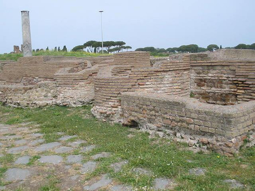 The Baths of Musiciolus are in the extreme south of Ostia, rather isolated in a mostly unexcavated area, to the east of the Baths of the Marine Gate and to the west of the Synagogue. They are to the north of the Via Severiana. They were excavated in the early 1980's. The masonry of the building is opus mixtum (Antonine), opus latericium (Severan), and opus vittatum (fourth century). The baths were installed in the second phase.