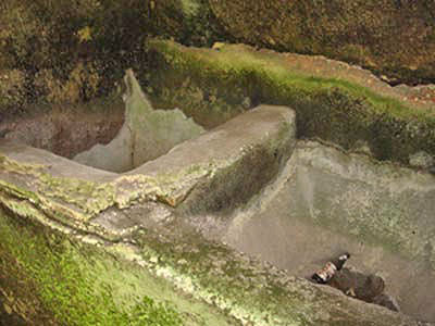| The fullery in the service area: the basins in the southern room. Photo: Eric Taylor. |